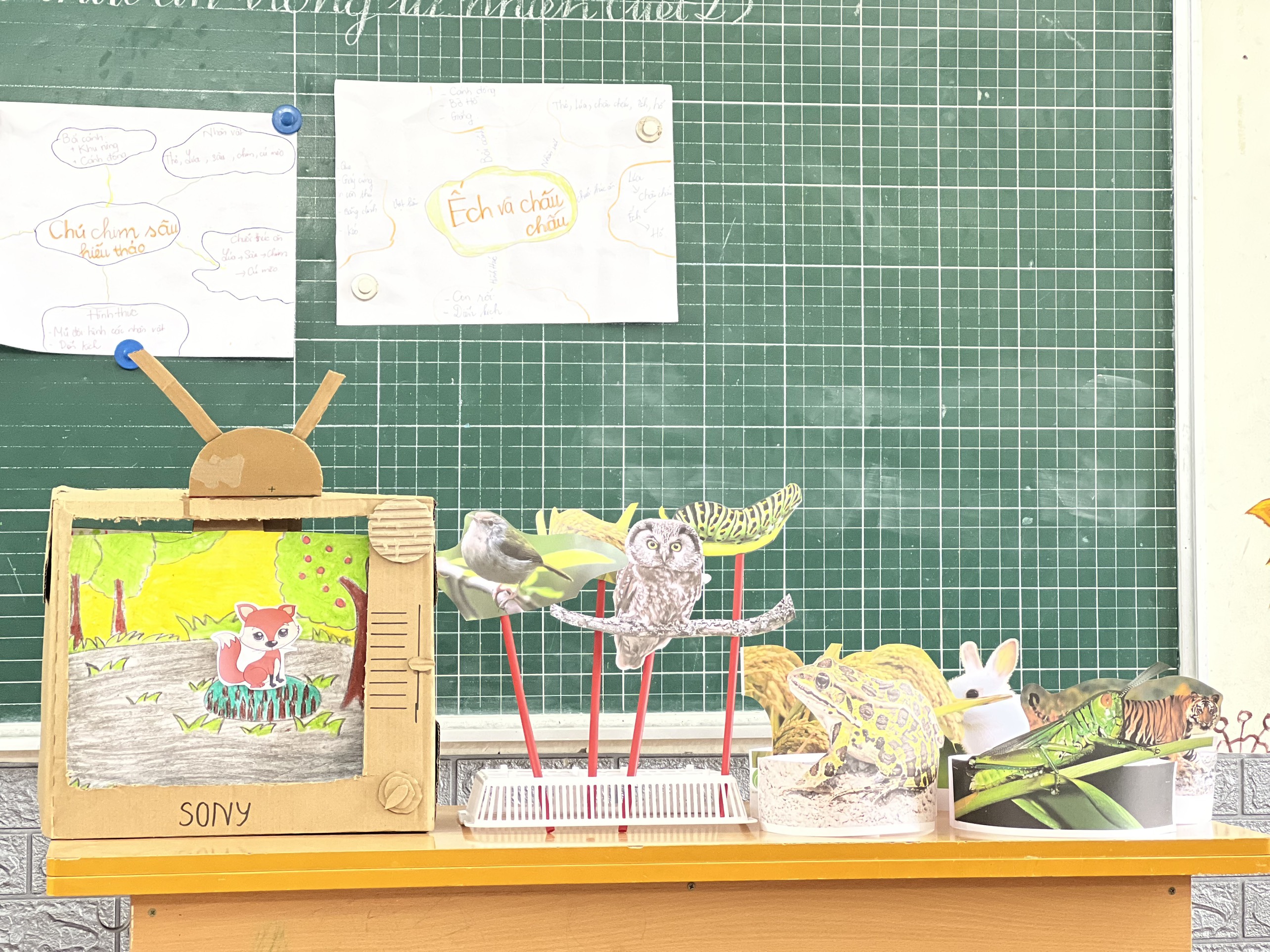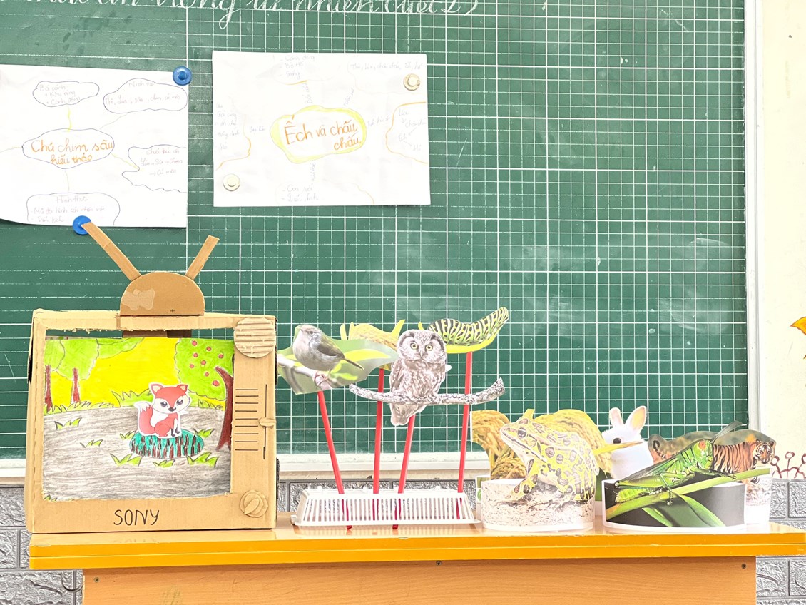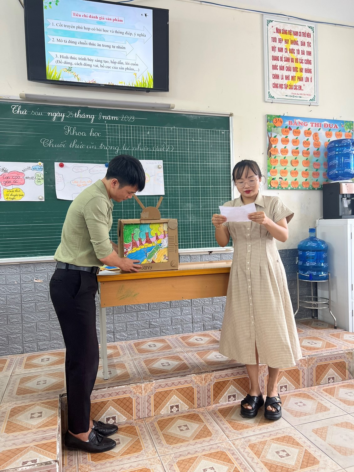 Trong suốt tiết học, học sinh được trải nghiệm và thực hành việc tìm hiểu các chuỗi thức ăn trong tự nhiên, xây dựng sơ đồ tư duy, thiết kế mỗi câu chuyện theo các chuỗi thức ăn và làm đồ dùng phục vụ cho phần diễn của câu chuyện, từ đó phát triển các năng lực và kỹ năng không chỉ trong lớp học mà còn ngoài đời thực. Học sinh làm việc nhóm, cùng nhau thực hiện, đưa ra ý tưởng và lựa chọn nguyên liệu phù hợp để tạo ra sản phẩm hoàn chỉnh.
