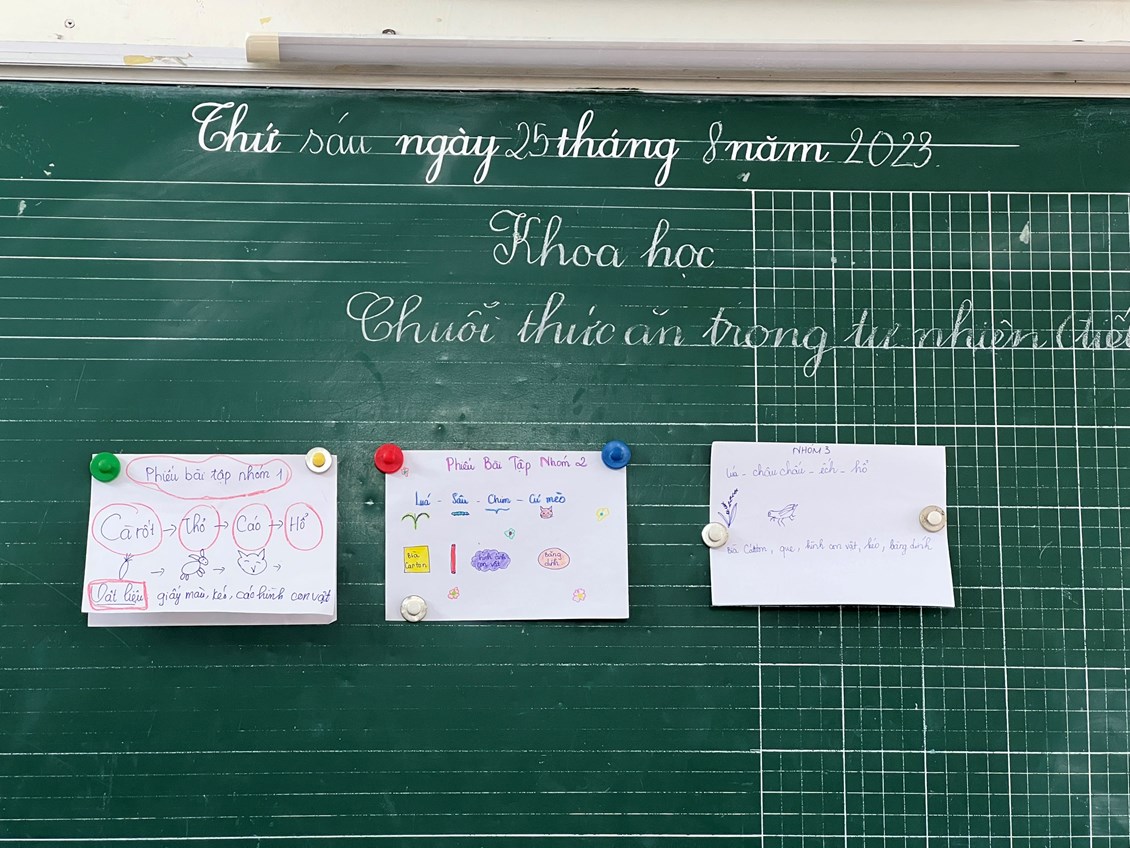 Thực hiện kế hoạch bồi dưỡng chuyên môn hè nhà trường, hôm nay 25/08/2023, khối 4 tổ chức nghiệm thu nội dung bài học STEM với chủ đề "Chuỗi thức ăn trong tự nhiên (Tiết 2)".