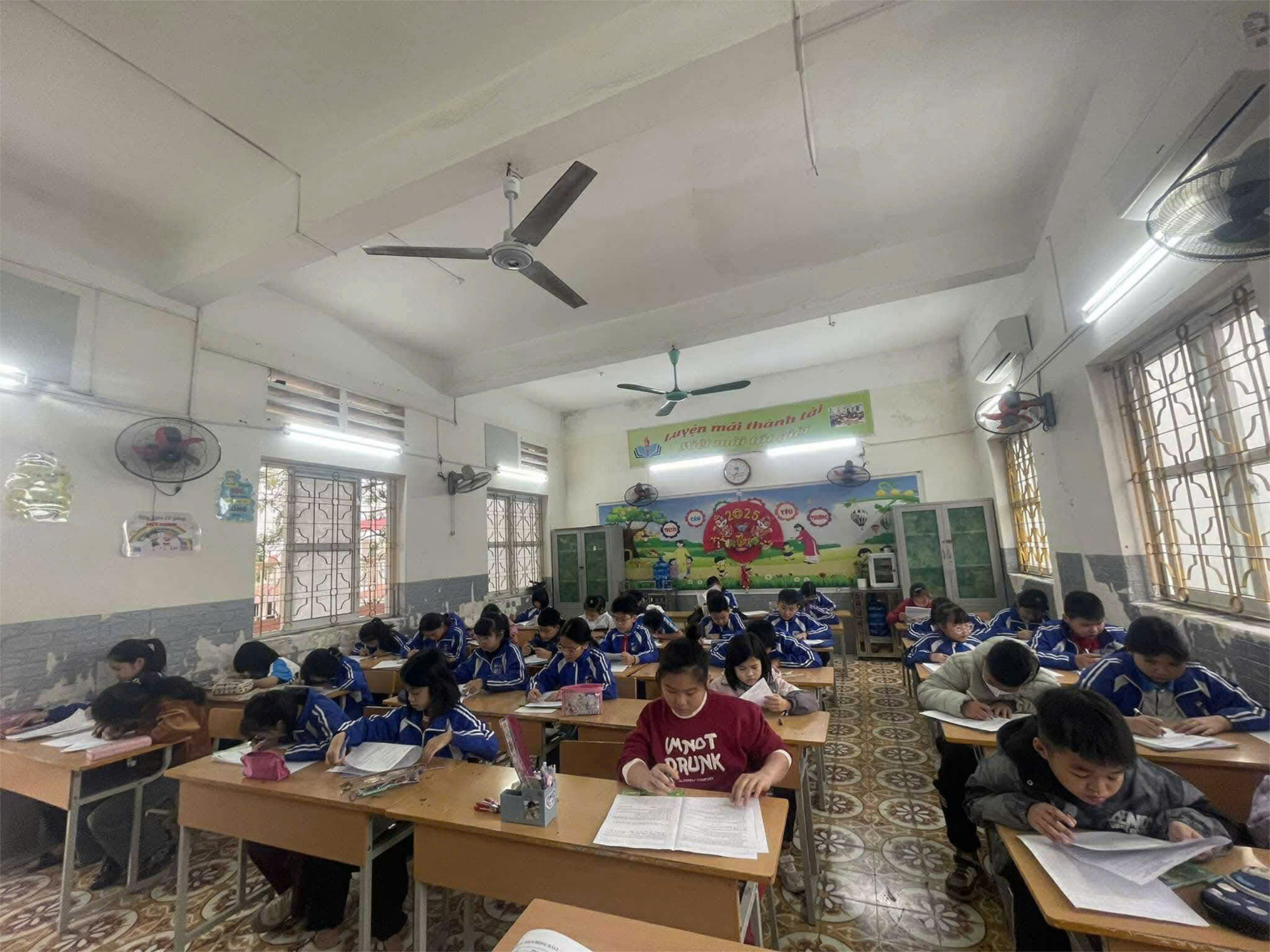 Việc tổ chức thi cuối năm cho học sinh từ xưa đến nay luôn được Nhà trường tổ chức rất nghiêm túc, minh bạch và công khai. Đề thi được ra theo đúng quy định. Học sinh không được phép sử dụng tài liệu trong quá trình làm bài thi. Học sinh được sắp xếp chỗ ngồi, đánh số thứ tự và phát đề. Bài thi Tiếng Việt, Toán của các con được dọc phách và ghép phách theo đúng quy định của Nhà trường. Giáo viên thực hiện trông thi nghiêm túc, trông thi chéo giữa các lớp, các khối theo sự phân công của Ban giám hiệu. Việc chấm bài cũng được phân chéo giữa các lớp và các khối. Giáo viên không được tự trông thi và chấm bài thi của học sinh lớp mình dạy. Trong quá trình học sinh làm bài thi, ban giám hiệu nhà trường giám sát chặt chẽ, kiểm tra từng lớp. Bài thi sau khi giáo viên chấm xong còn được nhà trường kiểm tra lại cẩn thận trước khi trả về cho học sinh. Những trường hợp học sinh, giáo viên vi phạm quy chế trông thi và chấm thi đều bị lập biên bản và xử lí kỉ luật.