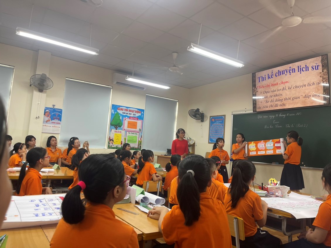 - Tiết 2 là hoạt động chế tạo sản phẩm, thử nghiệm và đánh giá. HS đã biết vận dụng kiến thức nền ở tiết 1 để xây dựng ý tưởng làm Sơ đồ dòng thời gian. Học sinh đã dùng những vật liệu đơn giản dễ kiếm, dễ tìm để làm sản phẩm.