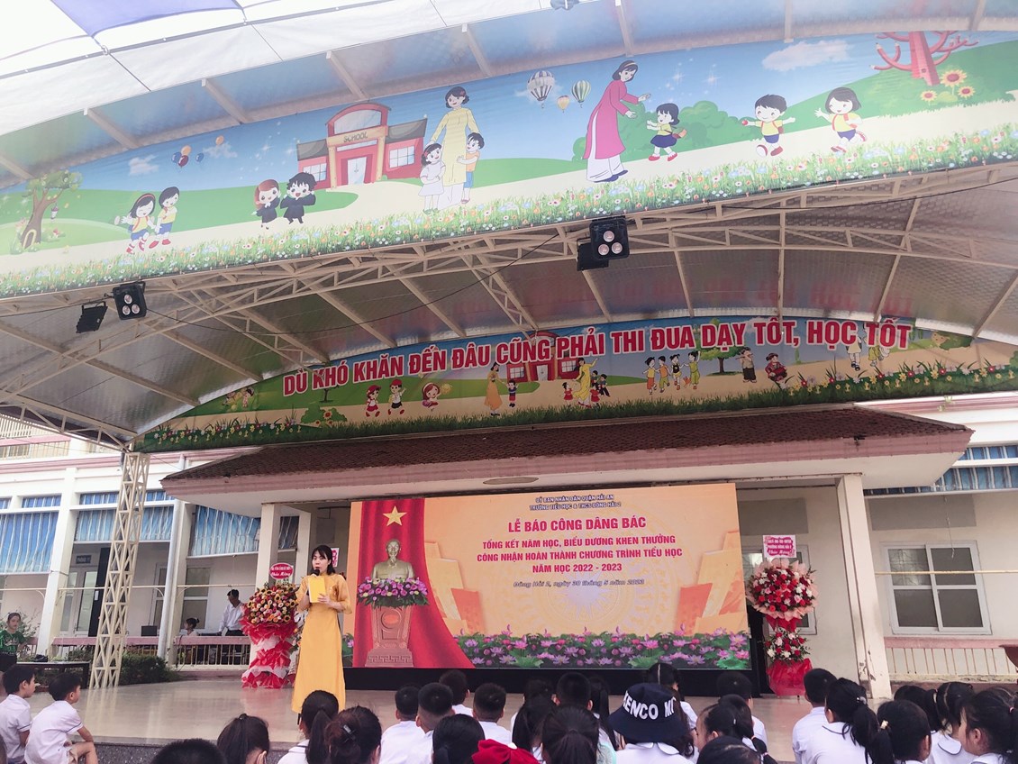 bí thư chi bộ - Phó hiệu trưởng nhà trường lên Báo cáo tổng kết năm học 2022 -