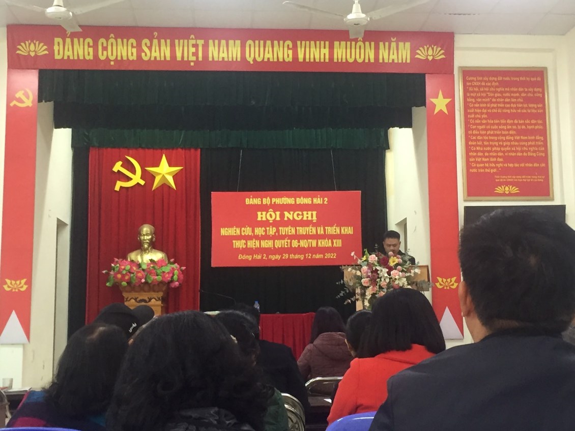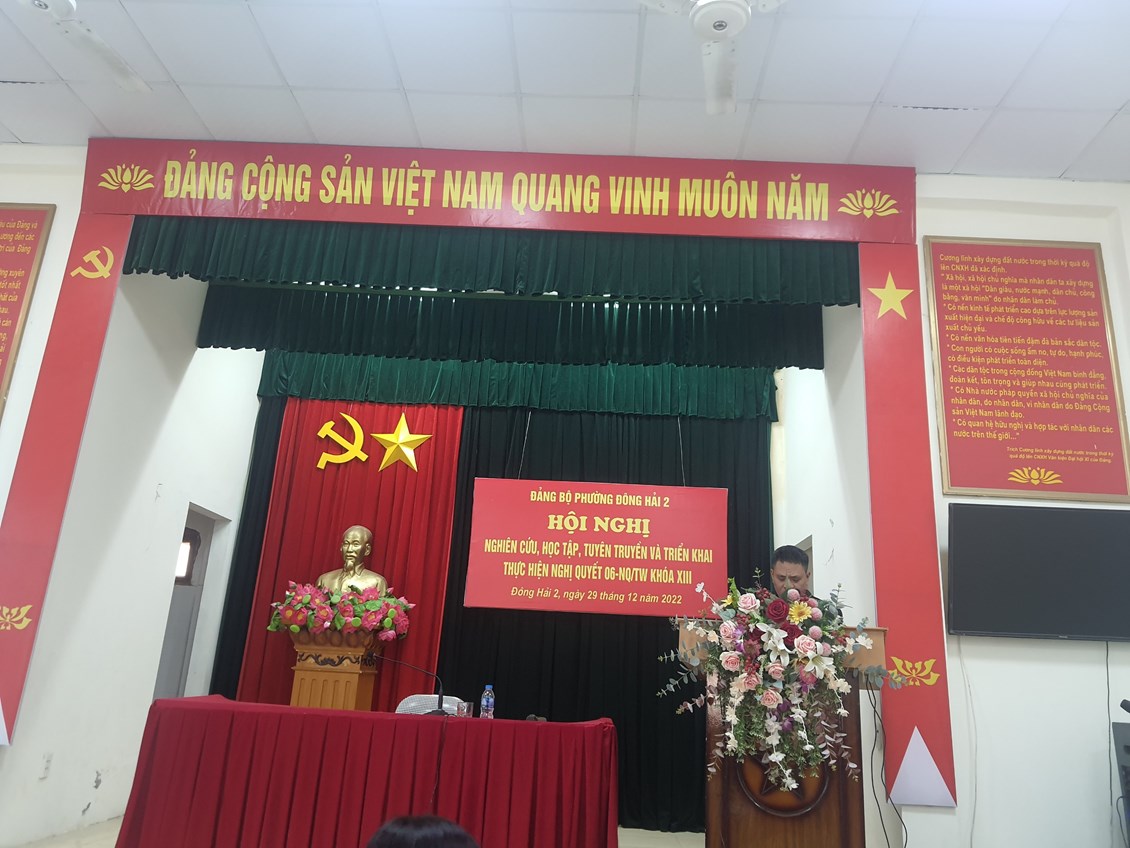 Sáng ngày 29/12, Đảng bộ phường Đông Hải 2 tổ chức Hội nghị Nghiên cứu, học tập, tuyên truyền và triển khai thực hiện nghị quyết 06 - NQ/ TW khoá XIII.