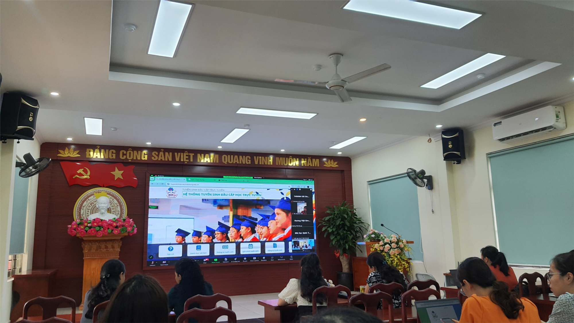 Tại Hội nghị, các đại biểu được hướng dẫn, tập huấn thực hiện công tác tuyển sinh đầu cấp trên Hệ thống quản lý, tuyển sinh đầu cấp. Cán bộ, giáo viên tham gia tập huấn đã trao đổi, thảo luận những khó khăn vướng mắc và đã được giải đáp cụ thể để triển khai công tác tuyển sinh các lớp đầu cấp theo hình thức trực tuyến hiệu quả.