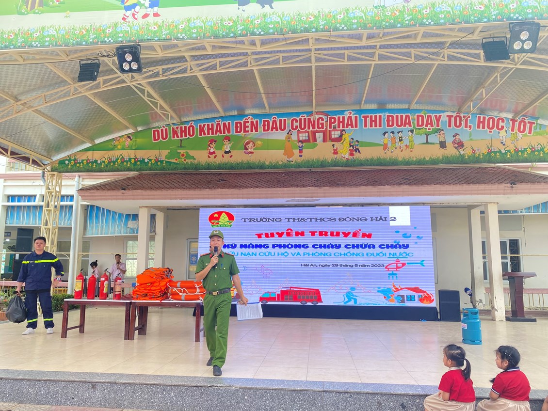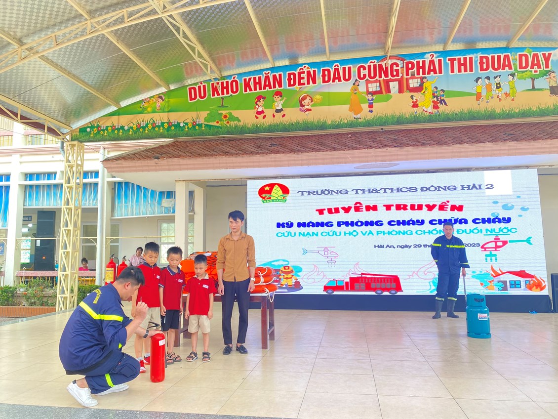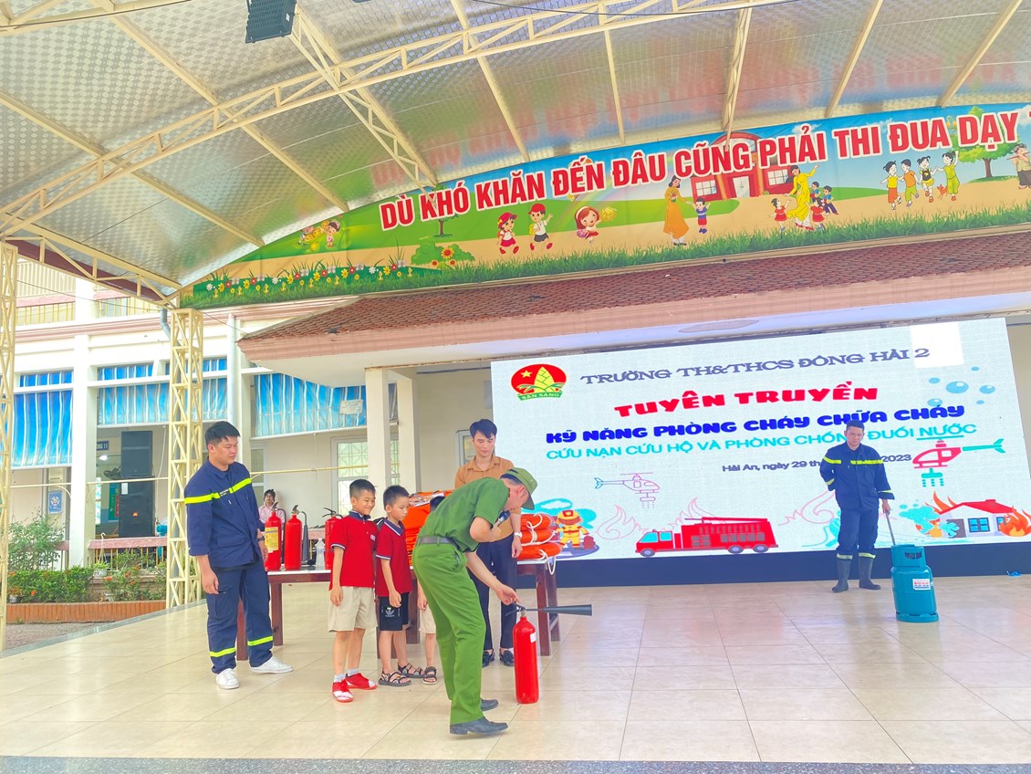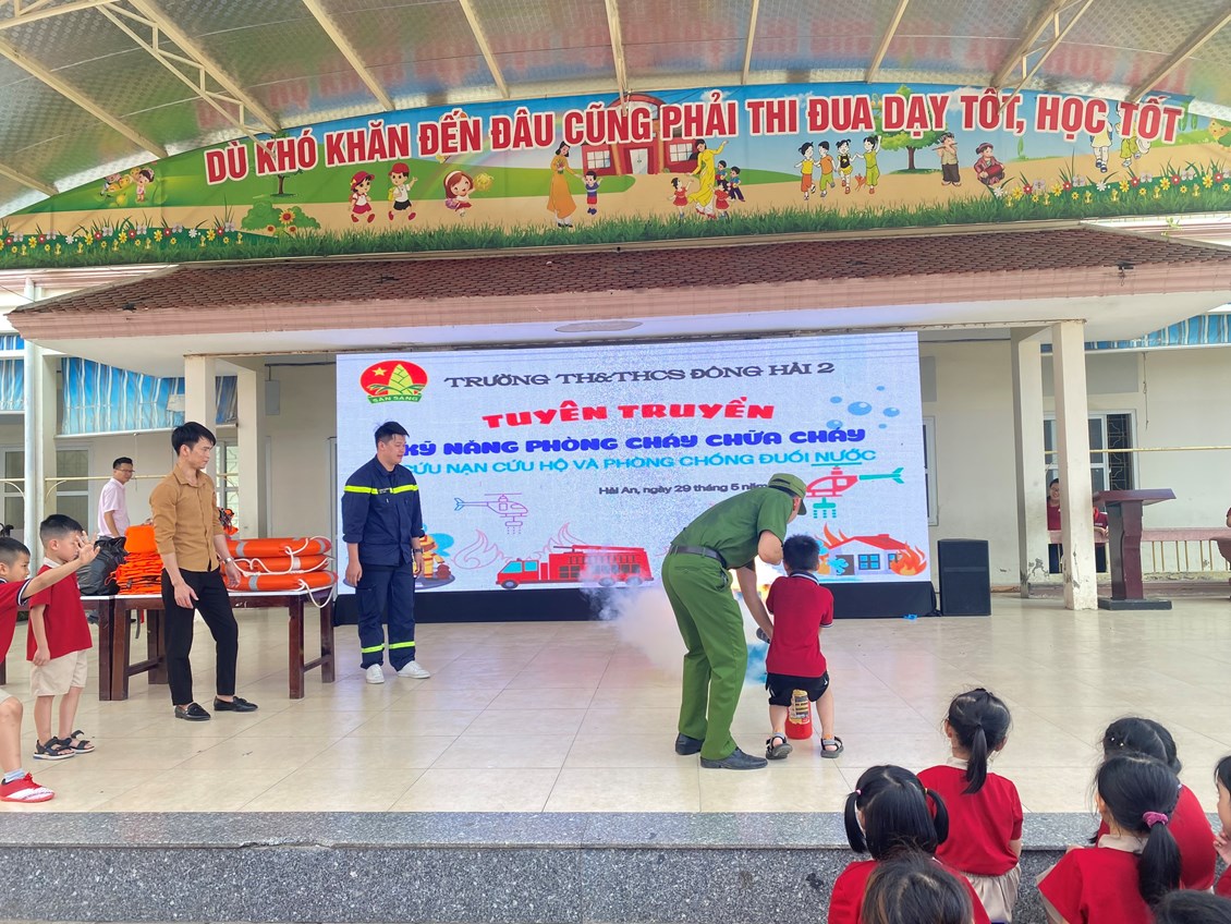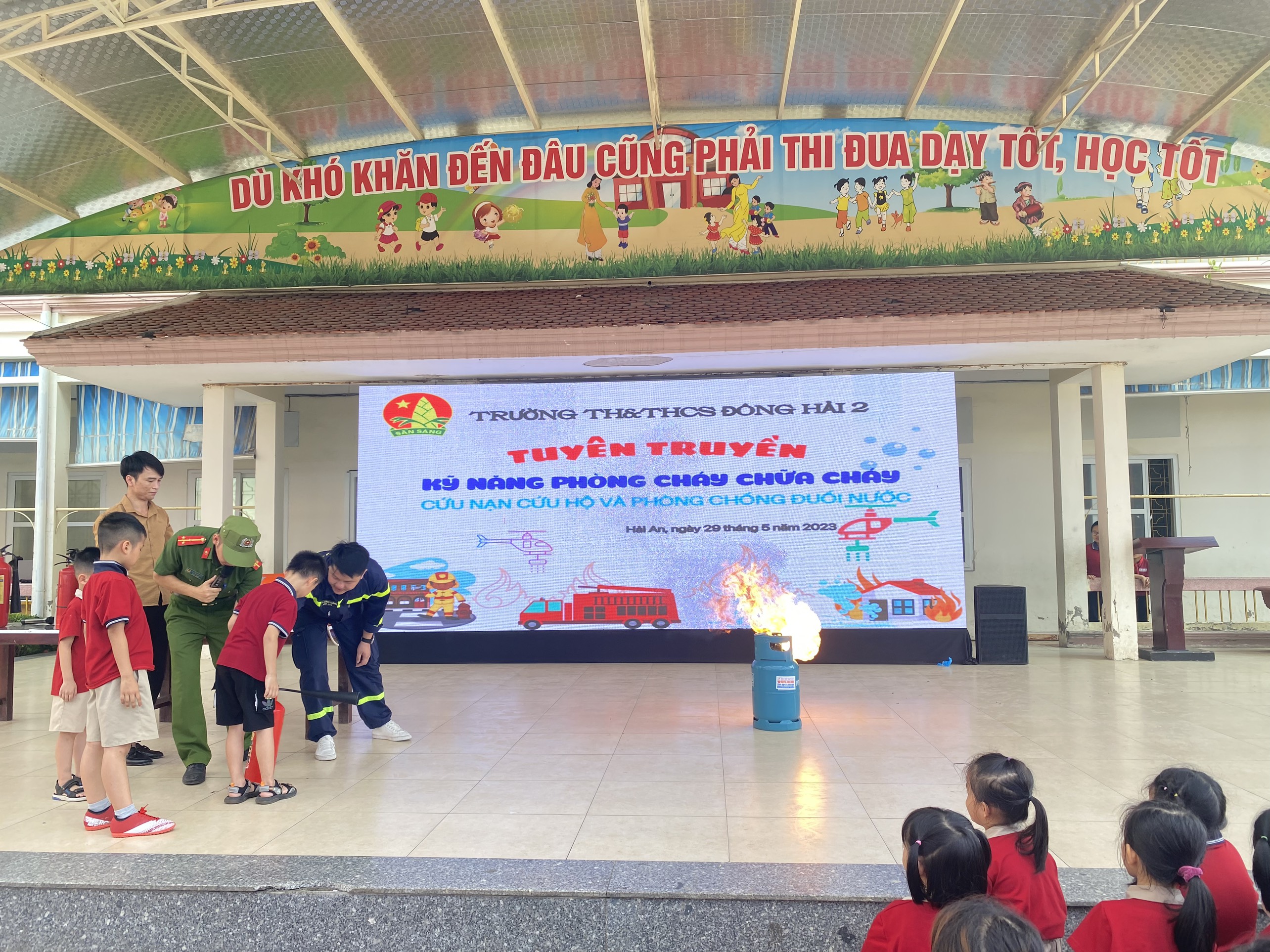 Sáng ngày 29/05/2023, trường Tiểu học & THCS Đông Hải 2 phối hợp với lực lượng Cảnh sát phòng cháy và chữa cháy Hải Phòng tổ chức một buổi hoạt động trải nghiệm giáo dục kỹ năng sống, Hội nghị tuyên truyền kỹ năng thoát hiểm, thoát nạn với nội dung về Phòng cháy chữa cháy. Hoạt động này được toàn thể cán bộ, giáo viên, học sinh và phụ huynh ủng hộ, hào hứng tham gia.