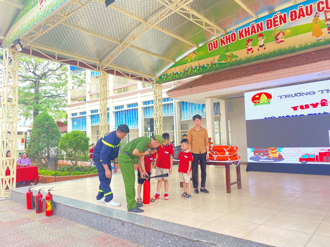 Các em được rèn luyện cách xử lý nhằm đảm bảo an toàn cho bản thân trong các tình huống cháy, nổ và tại nạn, sự cố. Các bạn học sinh đã được hướng dẫn các kĩ năng PCCC và Cứu hộ cứu nạn cơ bản như: Nhận biết dấu hiệu đám cháy; Kỹ năng thoát nạn trong đám cháy; Kỹ năng báo động cháy và báo động cứu người bị nạn.