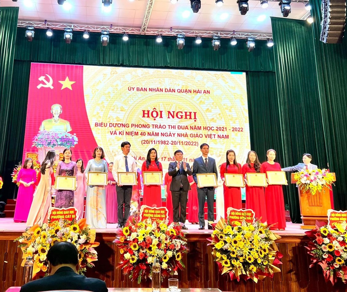 🌹Nhân dịp kỷ niệm 40 năm ngày nhà giáo Việt Nam 20/11, sáng 17/11 quận Hải An tổ chức hội nghị biểu dương phong trào thi đua năm học 2021 – 2022, tôn vinh thầy cô giáo tiêu biểu xuất sắc và học sinh đạt thành tích cao trong học tập. Tới dự có các đồng chí Đỗ Văn Lợi- PGĐ Sở giáo dục và đào tạo thành phố, Nguyễn Văn Tuấn- TUV- BTQU- CT HĐND quận, Dương Đình Ổn- PBT- CT UBND quận, Nguyễn Anh Tuấn- PBTTTQU, các đồng chí PCT HĐND, UBND, các đồng chí UVBTVQU, trưởng các ban, ngành, đoàn thể, các phòng ban chuyên môn của quận, lãnh đạo Đảng ủy, HĐND, UBND các phường trên địa bàn quận cùng đông đảo các thầy cô giáo, các em học sinh đạt thành tích cao trong học tập tham dự lễ biểu dương.