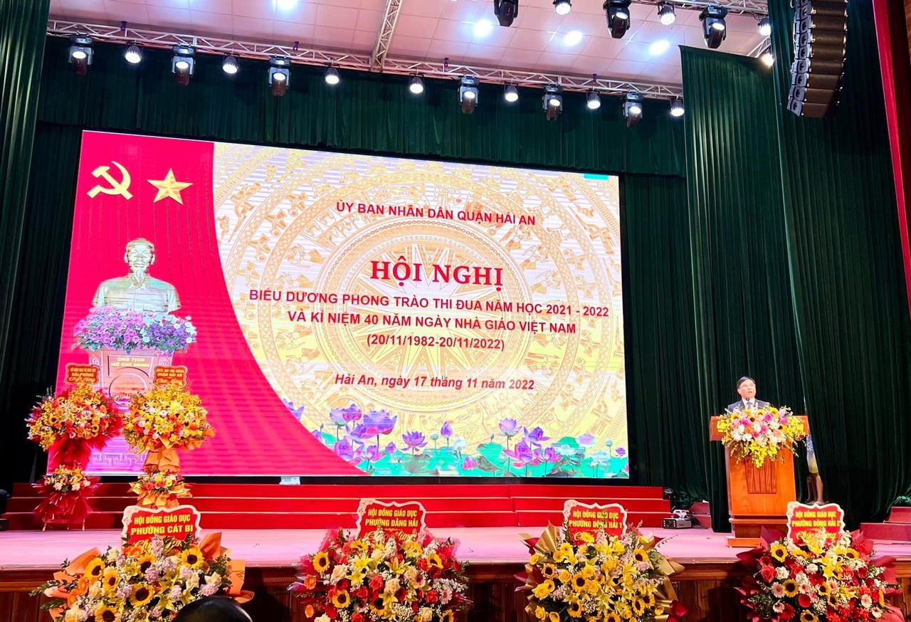 Tại lễ kỷ niệm, các đại biểu cùng ôn lại truyền thống tốt đẹp của Ngày Nhà giáo Việt Nam, truyền thống "tôn sư trọng đạo" của dân tộc; đồng thời ôn lại chặng đường phát triển 20 năm ngành Giáo dục và Đào tạo quận. Kỷ niệm 40 năm ngày Nhà giáo Việt Nam, là 20 năm trưởng thành và phát triển của giáo dục Hải An. Nhìn lại những năm đầu đầy gian nan, thử thách, với mặt bằng chất lượng học sinh, trình độ chuẩn giáo viên, cơ sở vật chất trường học đứng tốp cuối thành phố. Tuy nhiên, với sự cố gắng, nỗ lực của cả hệ thống chính trị, đặc biệt sự quan tâm của lãnh đạo địa phương giành cho công tác giáo dục đến nay, giáo dục Hải An đã bứt phá, ngày càng khẳng định, giữ vững vị trí tốp đầu thành phố. Bên cạnh đó, địa phương cũng là đơn vị dẫn đầu thành phố trong ứng dụng Công nghệ thông tin, triển khai trường học điện tử, lớp học toàn cầu, phòng học bộ môn. Với quan điểm “đầu tư cho giáo dục là đầu tư cho sự phát triển”, “Giáo dục là sự nghiệp của toàn dân”, quận Hải An đề ra mục tiêu tiếp tục đổi mới căn bản, toàn diện giáo dục, quan tâm nhiệm vụ dạy chữ song song với nhiệm vụ dạy người, đáp ứng yêu cầu đào tạo nguồn nhân lực chất lượng cao trong thời đại mới.
